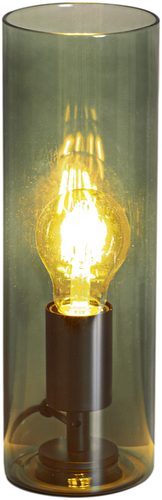 Elegant cylinderformet lampe i glass, conjakkfarget eller grønn.