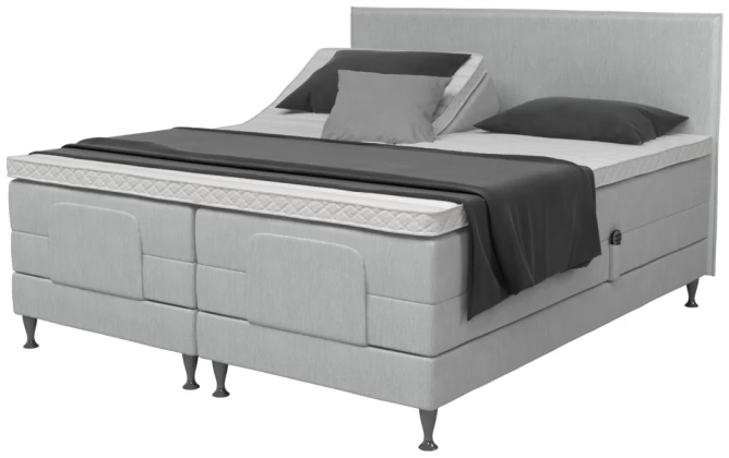 Med trådløs fjernkontroll kan du stille inn den posisjonen du ønsker, heve eller senke ben og hodeenden etter behov. Støysvake og sterke motorer med soft start og stopp.Nødsenking ved strømbrudd.Barnesikring og klembeskyttelse. På denne sengen kan du også regulere nakkeposisjonen. Du kan forhåndsprogrammere fire favorittinnstillinger.Større knevinkel – gir god avlastning for bena.
