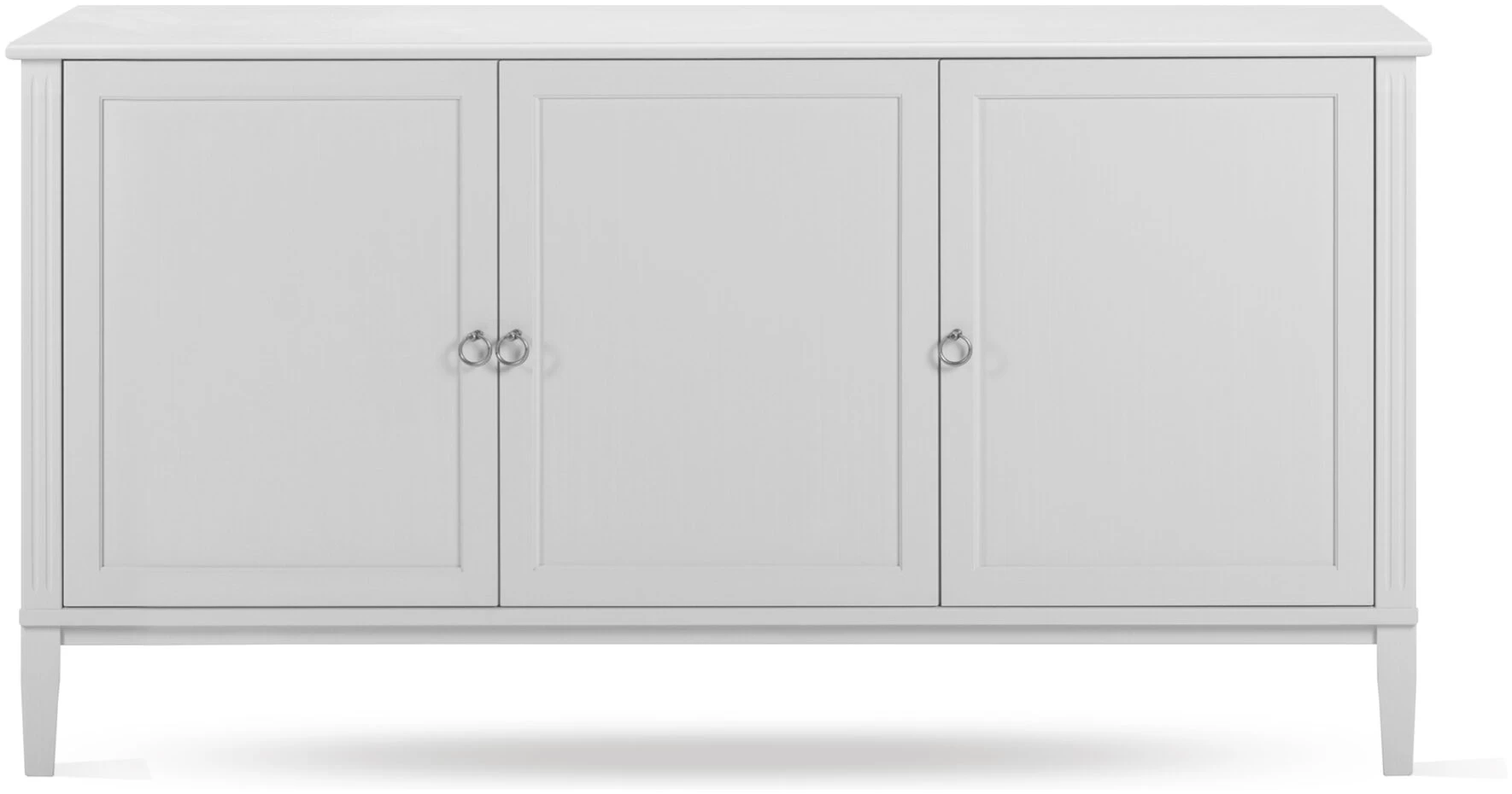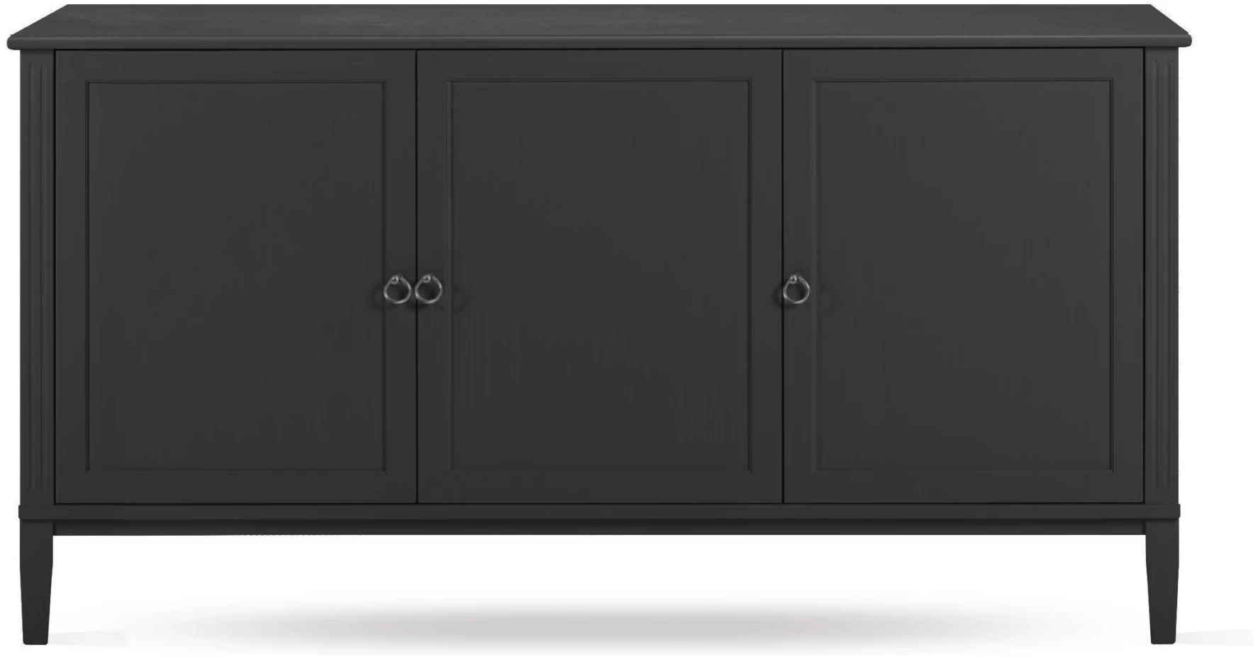 Håndmalt massiv furu og MDF med halvmatt lakk i sort, grå eller hvit.